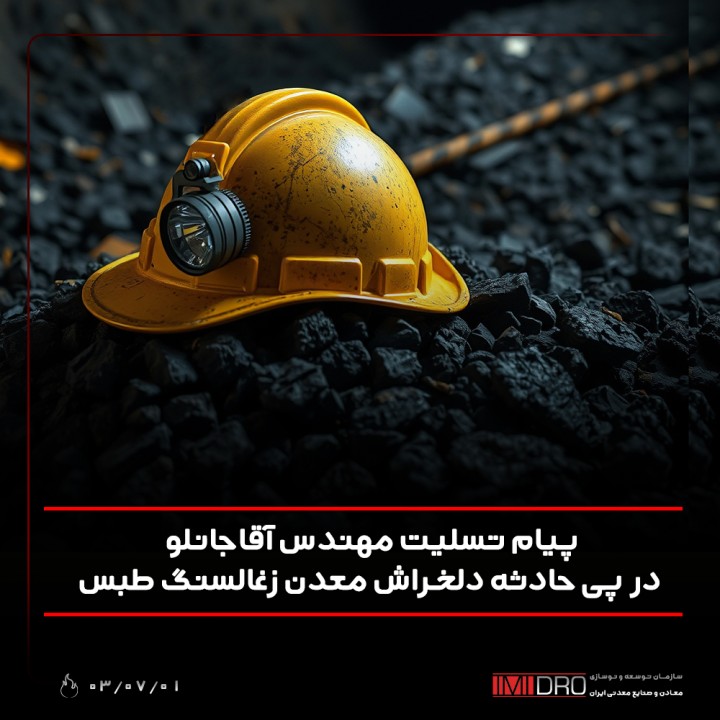 اینجانب واقعه دلخراش انفجار در بلوک C معدن زغالسنگ شرکت خصوصی معدنجو در شهرستان طبس را که به کشته و زخمی شدن تعدادی از کارگران عزیز کشورمان منجر شد به خانواده داغدار جانباختگان و جامعه شریف معدنکاران کشور تسلیت عرض میکنم.